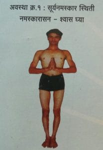 सूर्यनमस्काराची सुरवात उभे राहून,म्हणजेच दंड स्थितीतून होते.