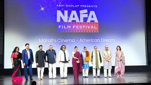 सॅन होजे । संपूर्ण अमेरिका आणि कॅनडा मधील मराठी रसिकांच्या तुडुंब प्रतिसादामुळे ‘नाफा फिल्म फेस्टीव्हल २०२५ कमालीचा यशस्वी झाला. अडीच हजारांहून अधिक प्रेक्षक ‘द कॅलिफोर्निया थिएटर’ मध्ये या महोत्सवाचा आनंद लुटण्यासाठी उपस्थित होते. तीन दिवसांच्या या महोत्सवामुळे मनोरंजनाची दिवाळी साजरी झाल्याची प्रतिक्रिया या महोत्सवाचे आयोजक, नाफाचे संस्थापक – अध्यक्ष अभिजीत घोलप यांनी व्यक्त केले.