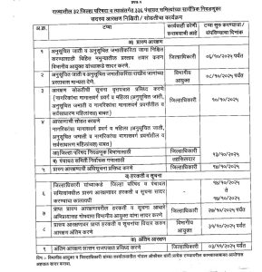 संबंधित जिल्हाधिकारी 10 ऑक्टोबर 2025 रोजी वृत्तपत्रात आरक्षण सोडतीसंदर्भातील सूचना प्रसिद्ध करतील. 13 ऑक्टोबर 2025 रोजी सोडत काढल्यानंतर प्रारूप आरक्षणाची अधिसूचना प्रसिद्ध केली जाईल. त्यावर 14 ते 17 ऑक्टोबर 2025 या कालावधीत हरकती व सूचना दाखल करता येतील. प्राप्त हरकती व सूचनांचा विचार करून 3 नोव्हेंबर 2025 रोजी शासन राजपत्रात अंतिम आरक्षण प्रसिद्ध केले जाईल.